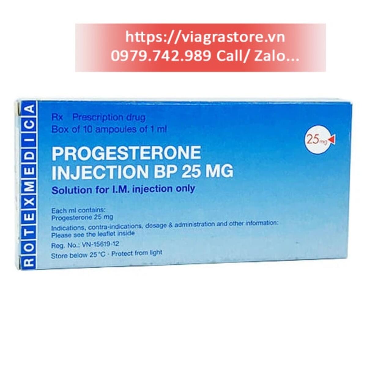 Thuốc Progesterone Injection BP 25mg mua ở đâu chính hãng, uy tín nhất? Bạn có thể mua thuốc trực tiếp tại www.viagrastore.vn. Hoặc liên hệ qua số hotline/zalo 0979.742.989 để được tư vấn sử dụng thuốc đúng cách.