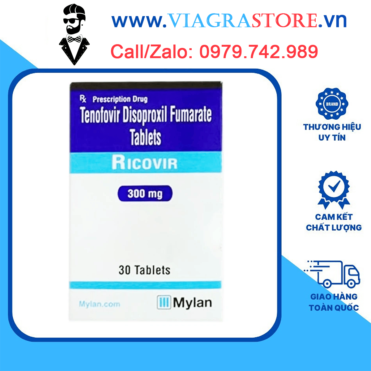 Thuốc Ricovir 300mg có thành phần là Tenofovir (ở dạng tenofovir disoproxil fumarate), được sử dụng để điều trị nhiễm virus HIV-1 và viêm gan virus B (HBV) ở bệnh nhân trên 18 tuổi. Thuốc Ricovir được sản xuất và nhập khẩu từ Ấn Độ, do công ty Mylan Laboratories Limited sản xuất với số đăng ký lưu hành ở Việt Nam là VN2-152-13.
