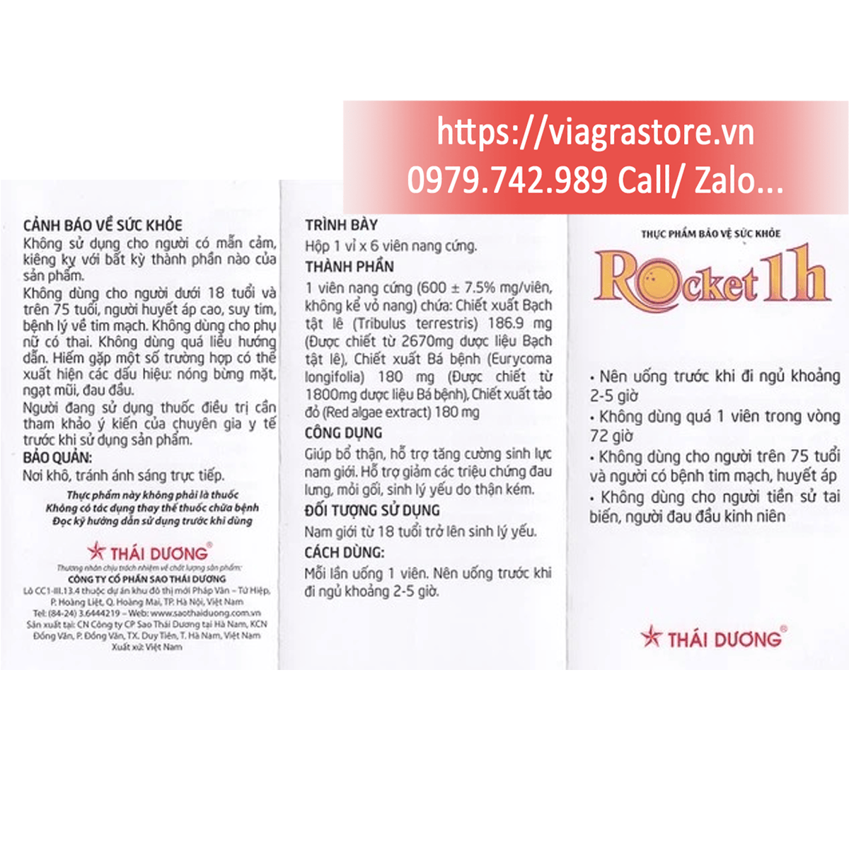 Viên uống Rocket 1h mua ở đâu chính hãng, uy tín nhất? Bạn có thể mua thuốc trực tiếp tại www.viagrastore.vn. Hoặc liên hệ qua số hotline/zalo 0979.742.989 để được tư vấn sử dụng thuốc đúng cách.